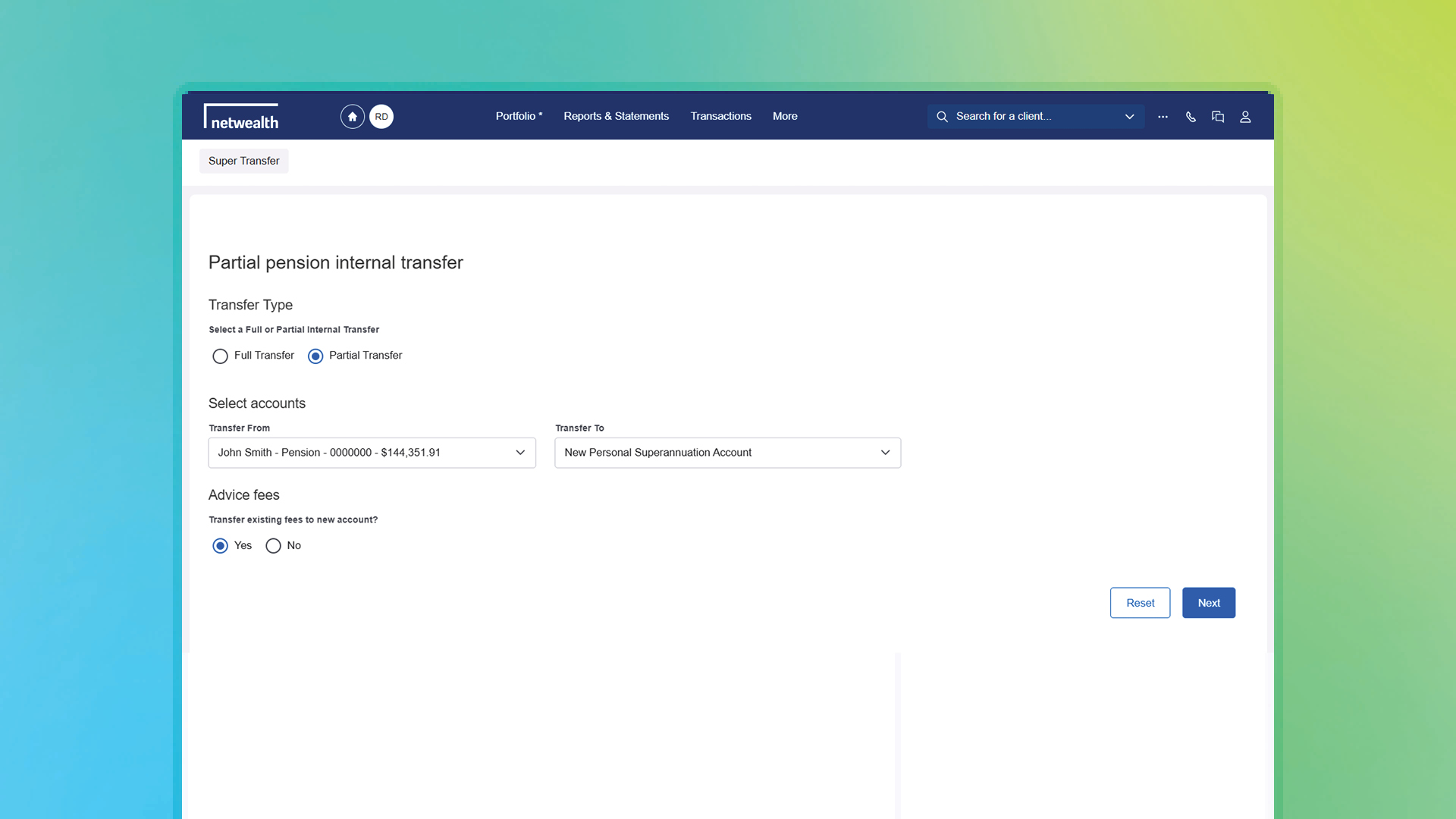 Netwealth’s Transfer Between Accounts tool now lets advisers move a portion of cash or selected assets between Super and Pension in either direction quickly, securely, and entirely online.