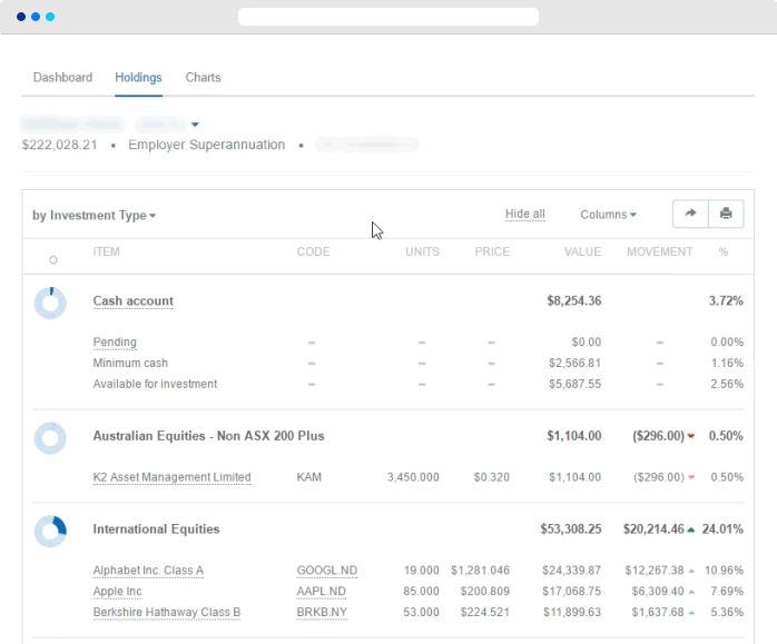 Track and oversee all your super and investment accounts via one centralised online portal.