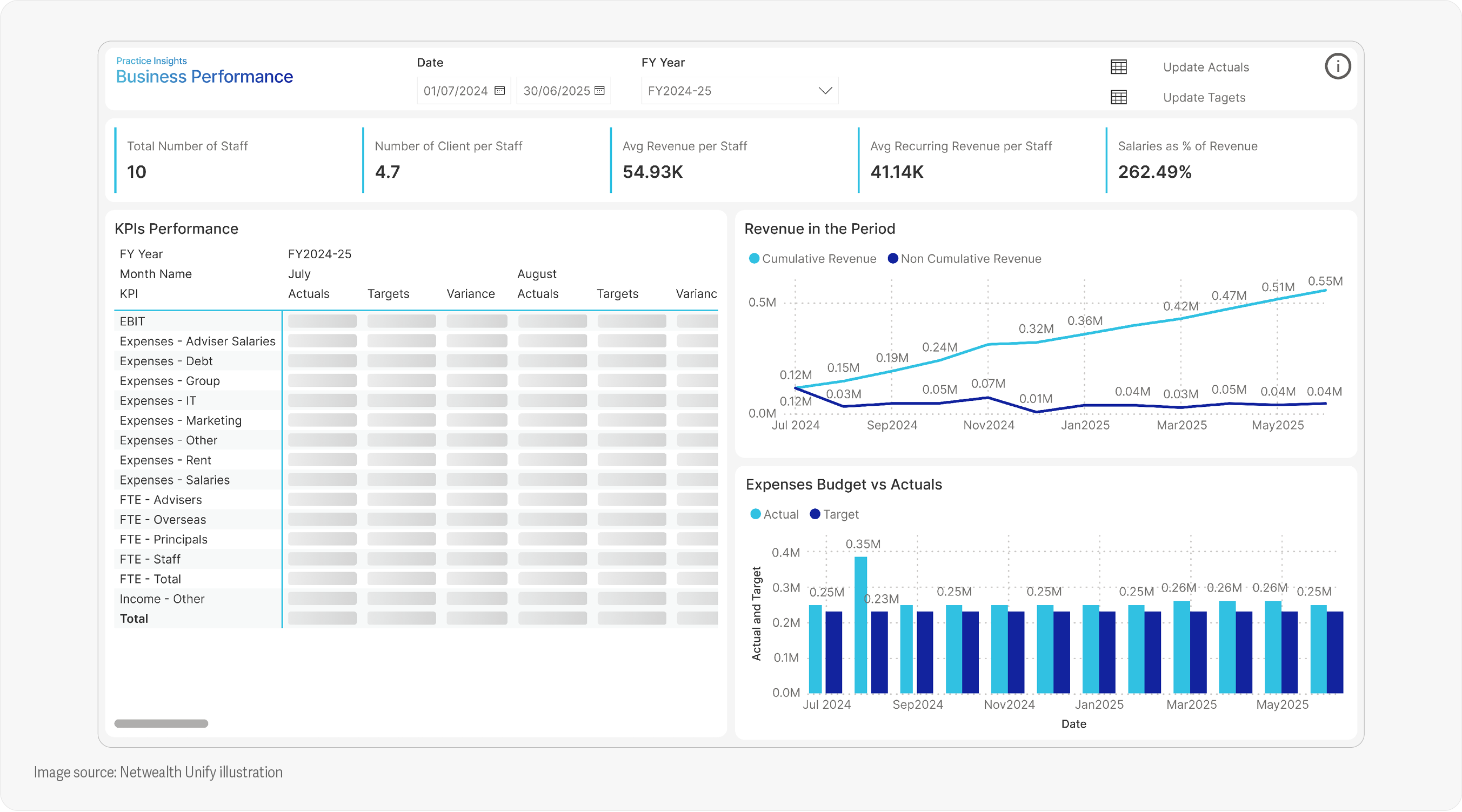 One of the most transformative tools aligned to data is the connected, real-time dashboard. These dashboards consolidate data from multiple systems, such as Customer Relationship Management (CRM) platforms, investment and super platforms, and commission management software, into a single, interactive view.